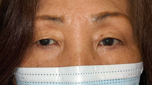 Preoperatively, patients report that their heavy, droopy eyelids obstruct their vision. They often constantly raise their eyebrows, and/or tilt their head back (chin up) in order to compensate; they usually are unaware that they are doing this. They may notice an obstruction of their peripheral vision, either from above, to the sides, or both.